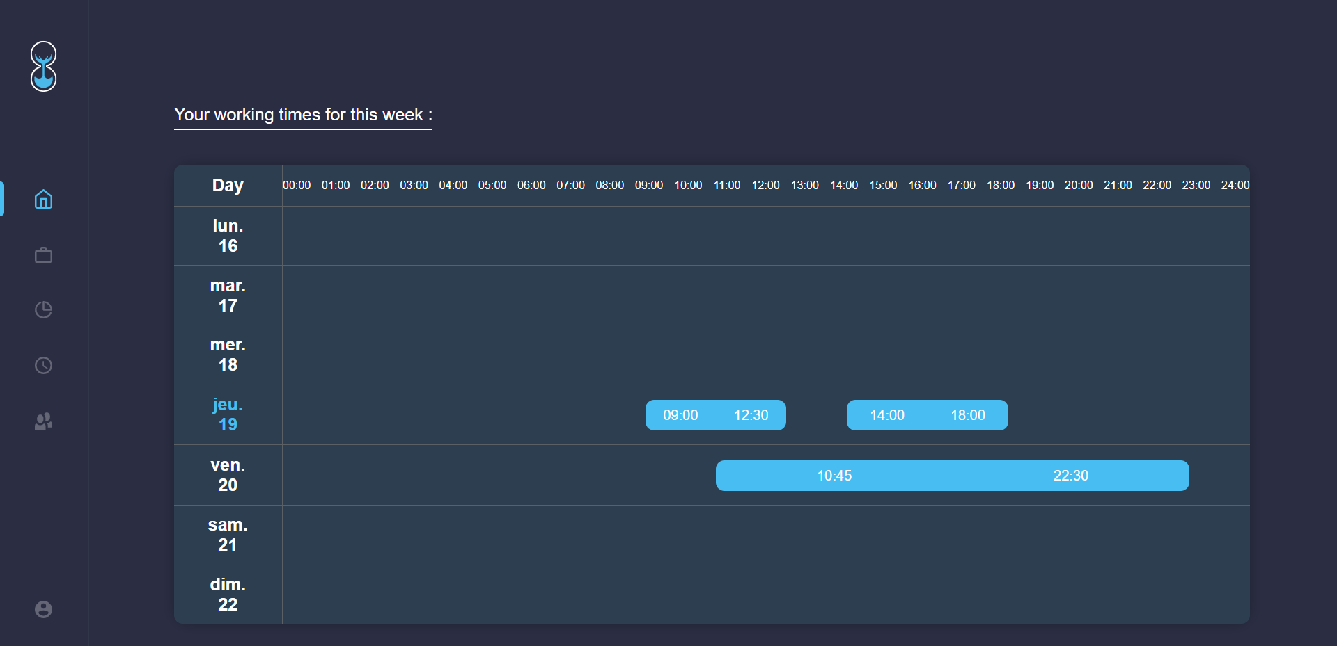 Les utilisateurs peuvent aussi voir leurs horaires depuis cette list, ils sont classifiés comme ceci :