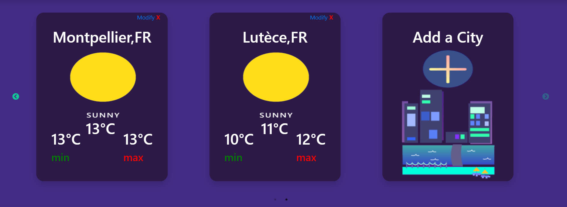 L'utilisateur peut ajouter, modifier et supprimer les villes qu'il souhaite voir dans sa page d'accueil.