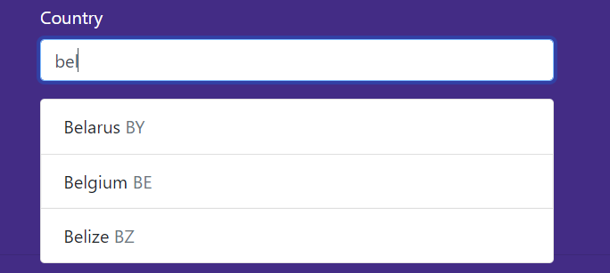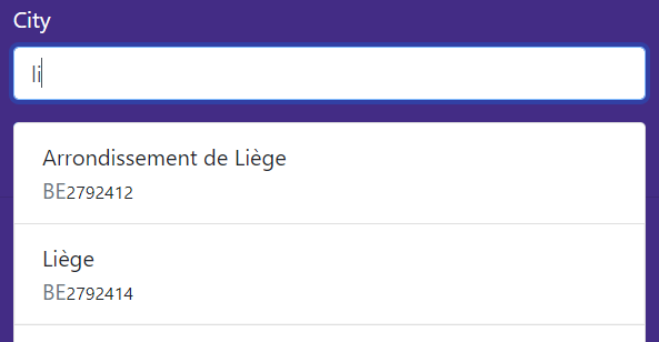 This form has an auto completion feature to make sure users can't add fictive cities, or simply cities that aren't managed by the API.
